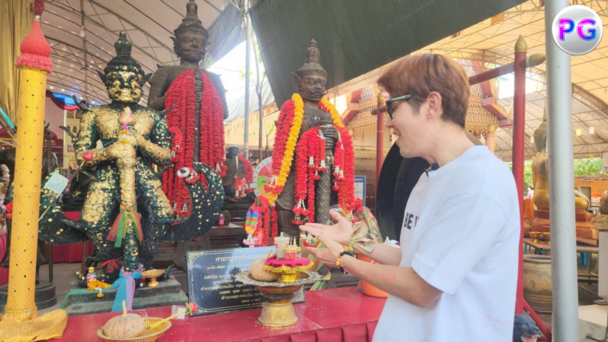 ก่อนที่จะเดินทางกลับ เล็ก เจษฎา ยังแวะไหว้ขอโชคลาภกับท้าวเวสสุวรรณ